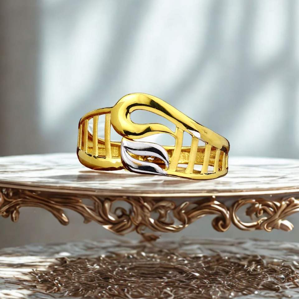 แหวนทองลายคลื่นสองสี | ดีไซน์สายรัดแบบมีร่องสำหรับสวมใส่ในชีวิตประจำวัน | เครื่องประดับทองคำแท้สีเหลืองน้ำหนักเบา 2 กรัม