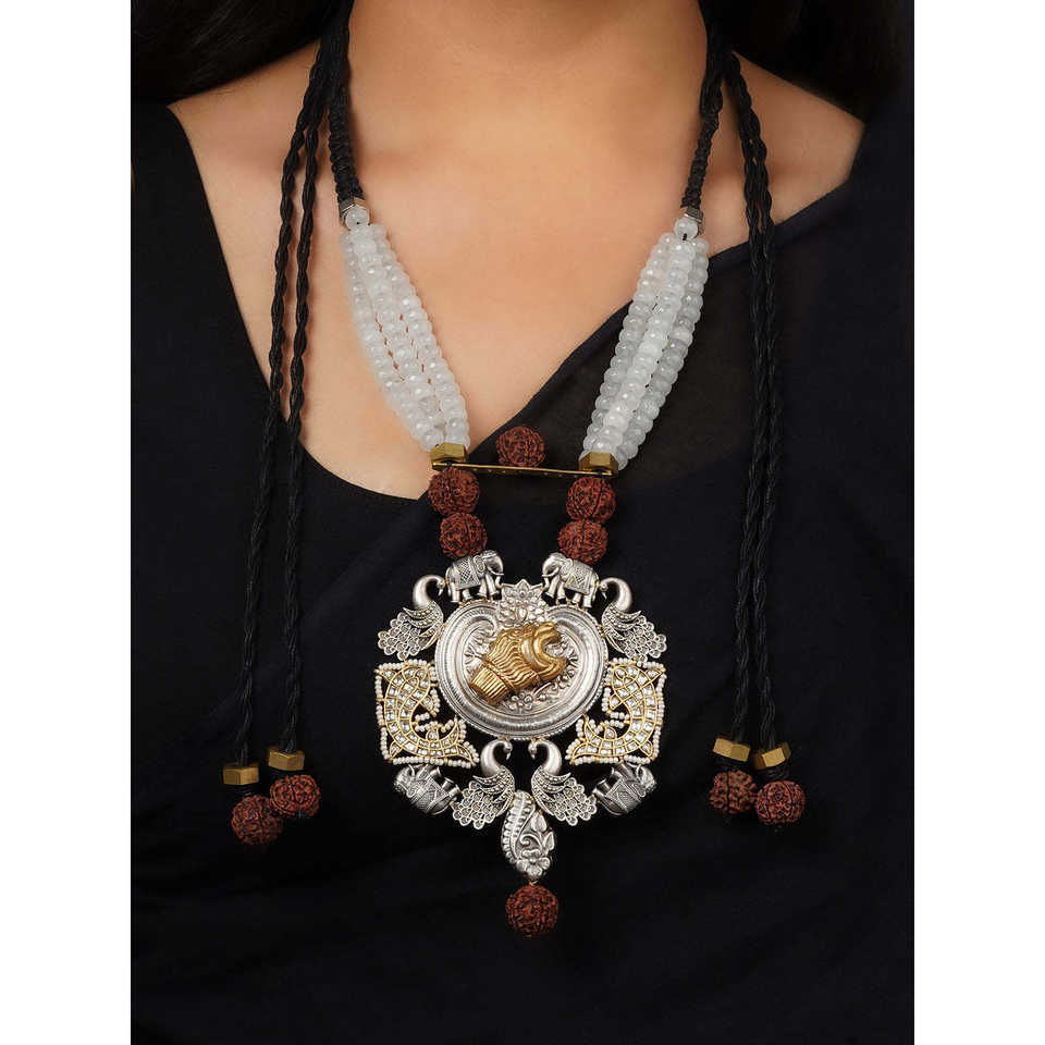สร้อยคอแบบคู่สีขาว mishr เผ่า MR-N89โซ่ชั้นดี