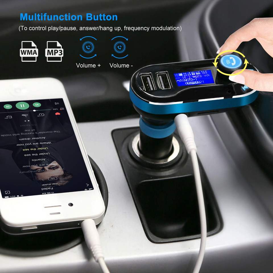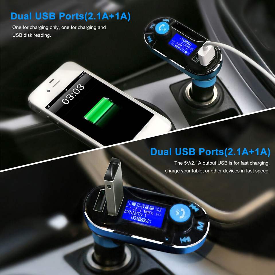 เครื่องเล่น MP3 ในรถยนต์พร้อมที่ชาร์จ USB คู่ พร้อมเครื่องส่งสัญญาณ FM ไร้สาย โทรแบบแฮนด์ฟรี ช่องต่อ Aux-in หน้าจอ LED รีโมทคอนโทรล