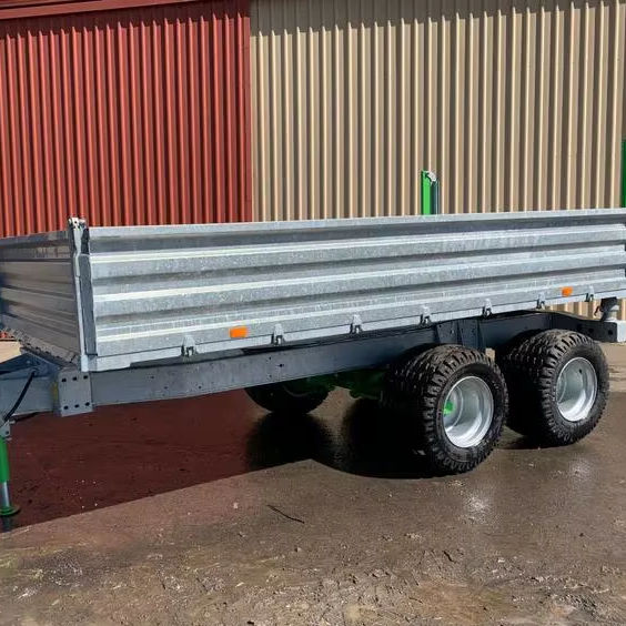 รถพ่วงไฮดรอลิกแบบสองล้อสำหรับใช้งานในฟาร์ม สภาพใหม่และมือสอง พร้อมอุปกรณ์หลัก เช่น เพลาเกียร์ ยาง มอเตอร์
