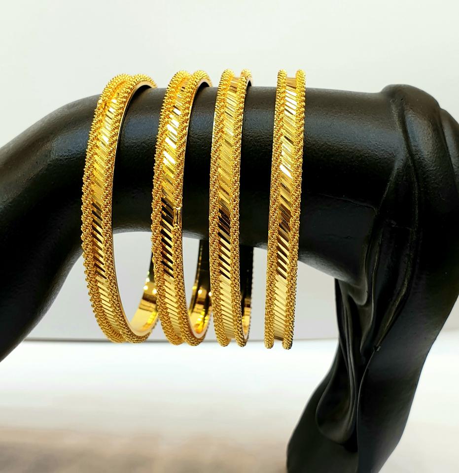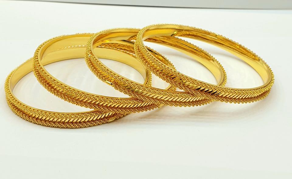 ชุดกำไล4ชิ้นของผู้หญิงชุบทอง24KT ดูไบอุปกรณ์เสริมแฟชั่นยอดนิยม3ชิ้นราคาเป็นมิตรกับงบประมาณ