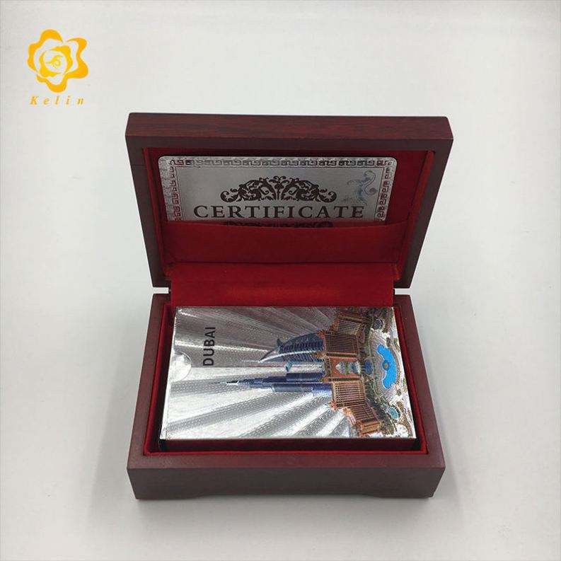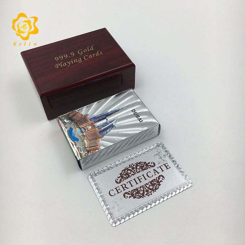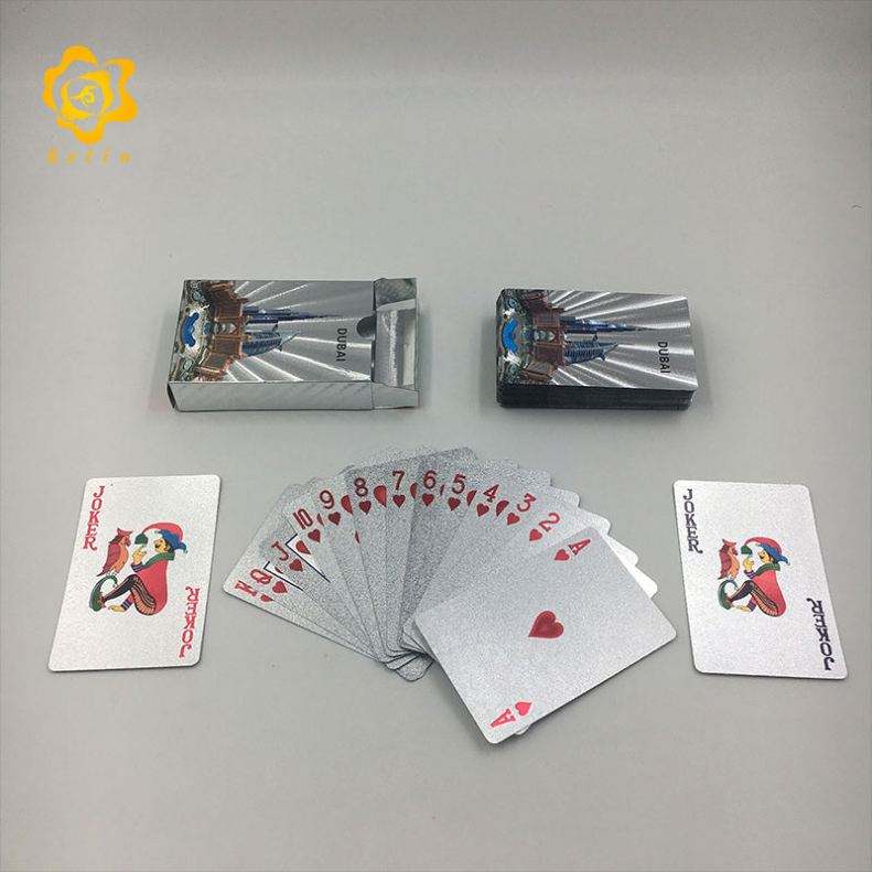 ไพ่แผ่นฟอยล์สีเงินรูปทิวทัศน์อาคารดูไบสำหรับเล่นเกม