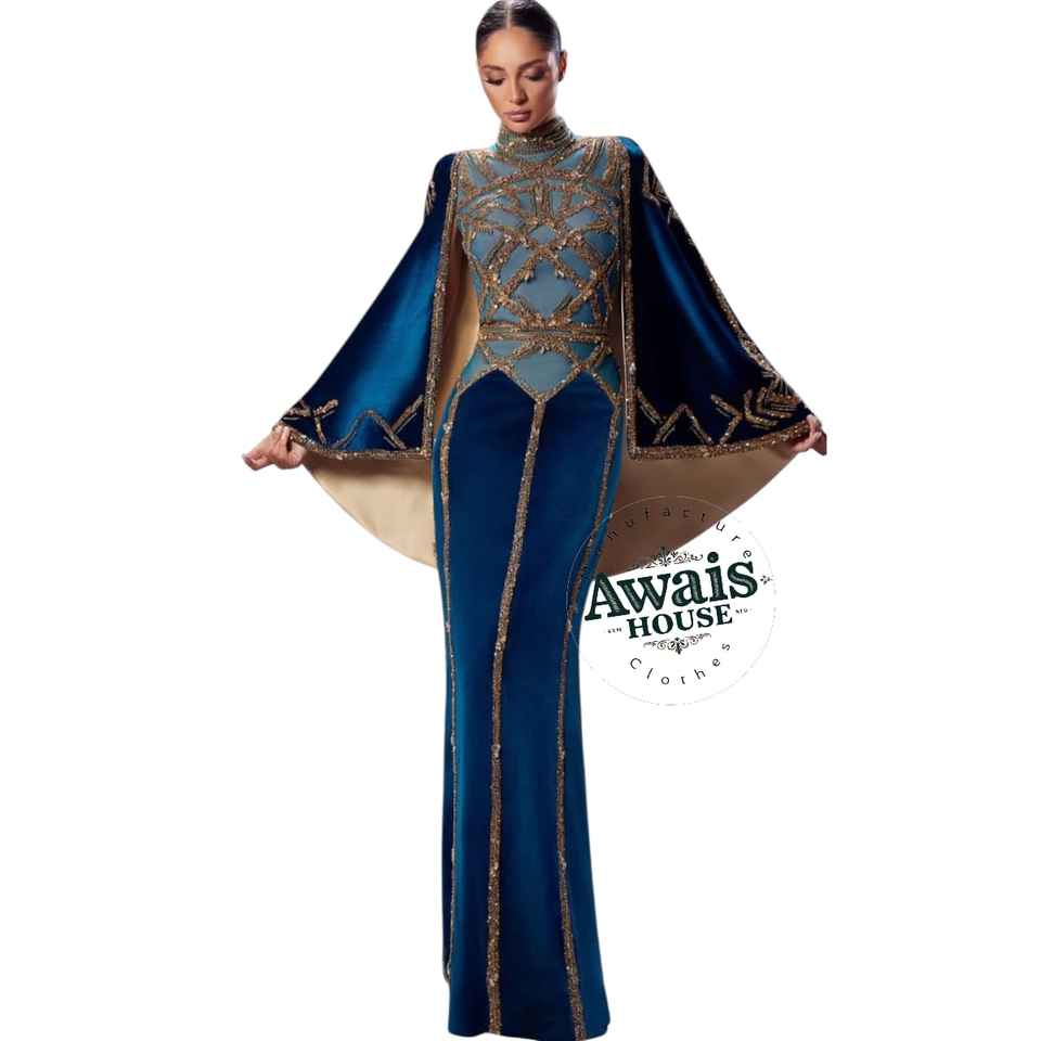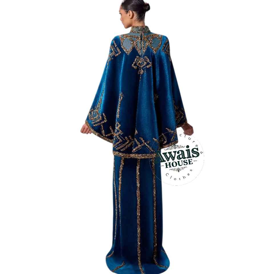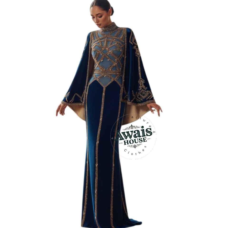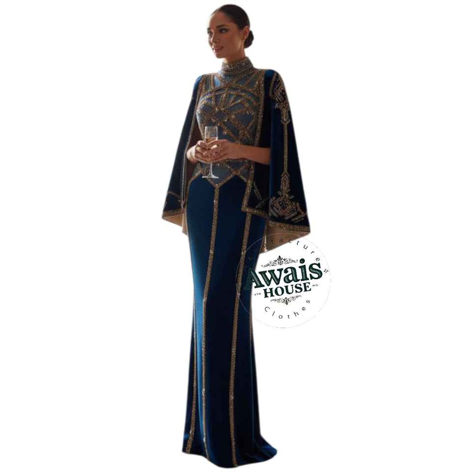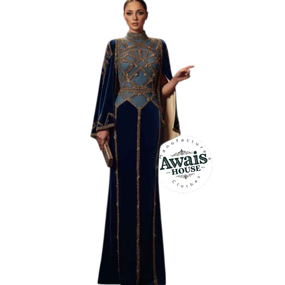ชุดเดรสมุสลิมสำหรับผู้หญิงชุดเดรสดูไบคาฟตันขนาดใหญ่พิเศษผ้าชิมเมอร์ประดับลูกปัดชุดแต่งงานทำด้วยมือทำจากโพลีเอสเตอร์