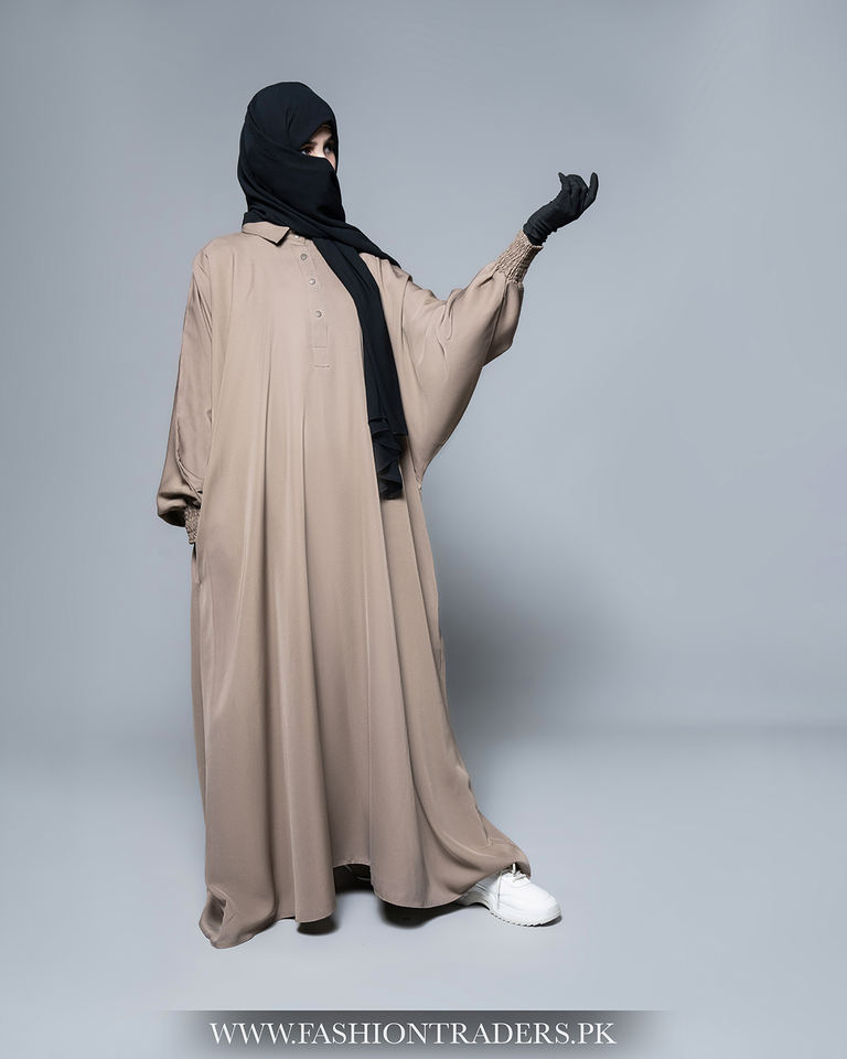 Product name:Bisht Collar Abaya with Scrunch Sleeves and Snap Buttons