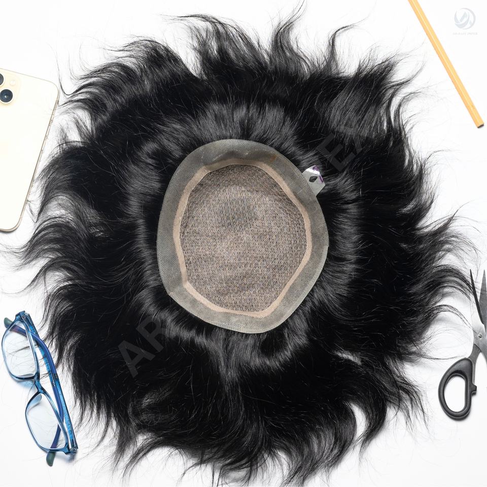วิกผมพรีเมี่ยมสำหรับผู้ชายจากดูไบประดับลูกไม้ด้านหน้าแบบมิราจแบบอินเดียเลมี่ผมทรงตรงเนื้อผมแบบพรีเมี่ยมขอบ Miraz