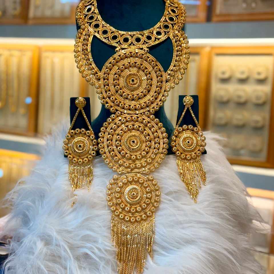 ชุดเครื่องประดับแฟชั่นชุบทอง24K สไตล์วินเทจดูไบสำหรับงานแต่งงานและงานเลี้ยง