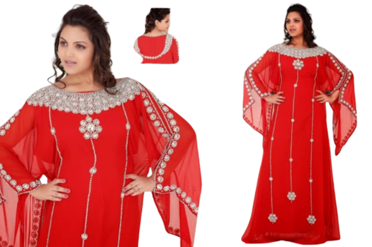 2022 Dubai Farasha Kaftan Beautiful Red Moroccan Design Traditional Muslim Dress with Stone Beads Handwork Long Modest Style
