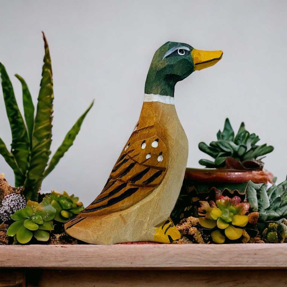 ประติมากรรมไม้แกะสลักรูปเป็ด งานศิลปะตกแต่งบ้านที่ไม่เหมือนใคร รูปปั้นและของตกแต่งสำหรับตกแต่งห้อง
