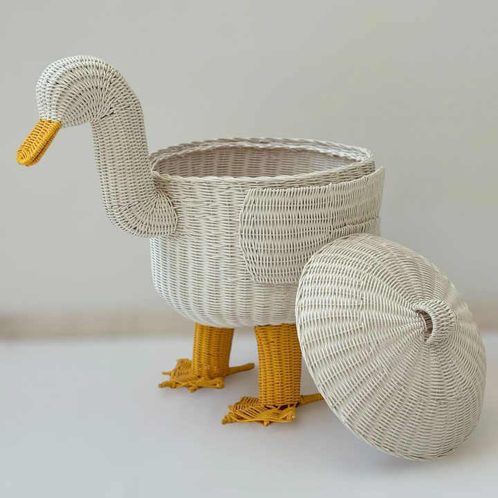 ตะกร้าเก็บของรูปเป็ด ตะกร้าหวายสานมือ สำหรับเด็ก ของตกแต่งวันวาเลนไทน์