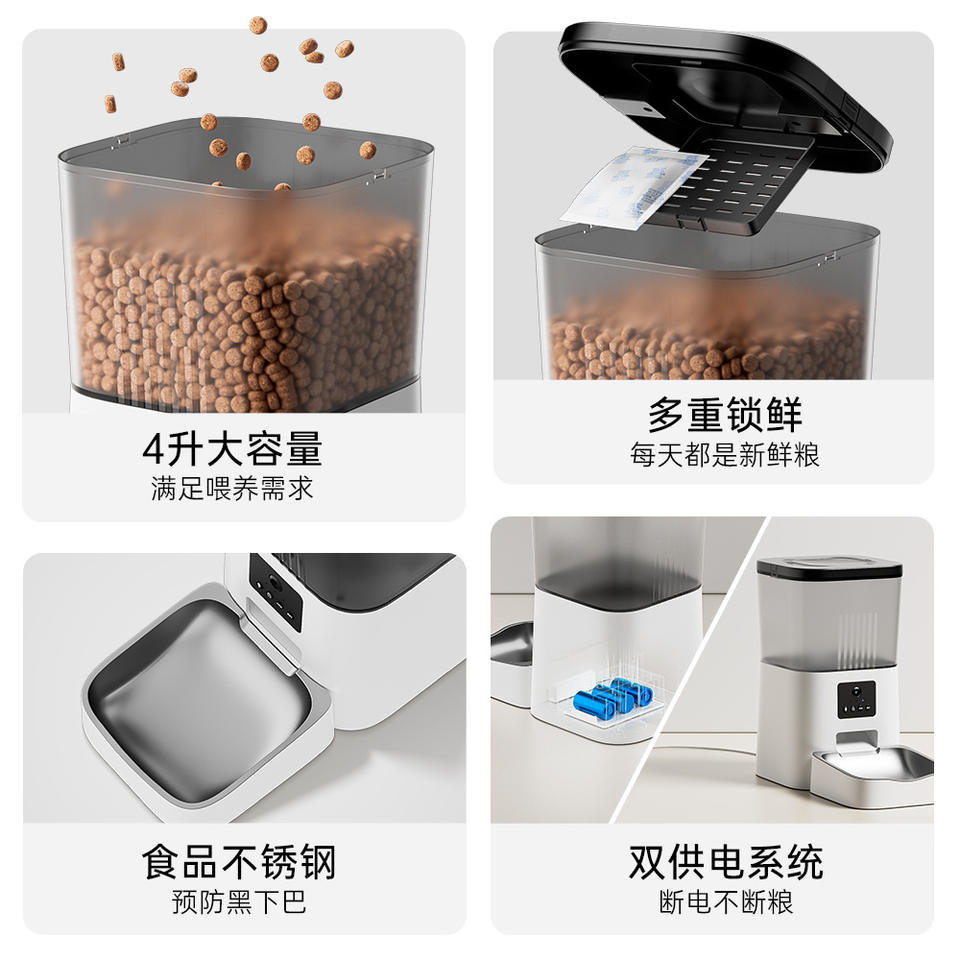 ดูดูเครื่องให้อาหารสัตว์เลี้ยงอัตโนมัติ 4 ลิตร เครื่องจ่ายอาหารสุนัขและแมวแบบตั้งเวลาอัจฉริยะ พร้อมควบคุมผ่านแอปพลิเคชัน ปลั๊กแบบ US