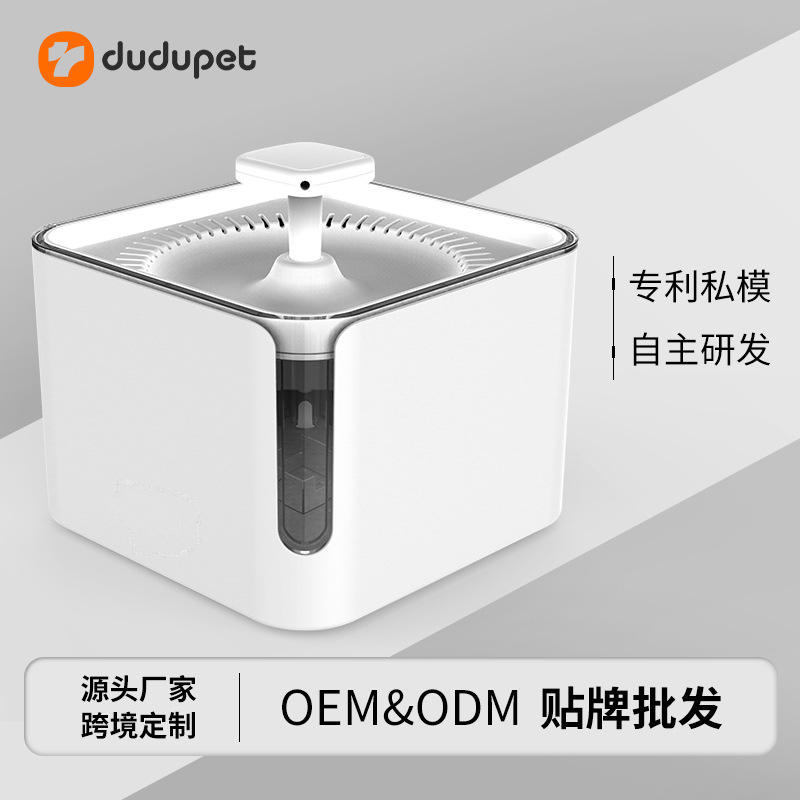 เครื่องให้น้ำสัตว์เลี้ยงอัตโนมัติ Dudu สีขาว รูปทรงสี่เหลี่ยม พร้อมระบบกรองน้ำแบบหมุนเวียน เงียบ ฉลาด สำหรับแมวและสุนัข ถอดประกอบได้