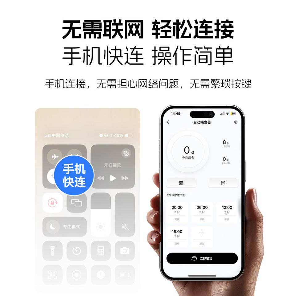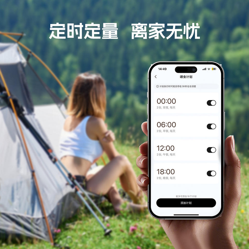 เครื่องให้อาหารสัตว์เลี้ยงอัตโนมัติ Dudu สีขาว ทรงกลม 1.3 กก. ใช้พลังงานแบตเตอรี่ ควบคุมผ่านแอพ ถอดประกอบได้ สำหรับแมวและสุนัข