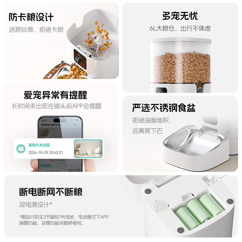 เครื่องให้อาหารอัตโนมัติ Dudu Pet รุ่น Dual Camera Smart Feeder ความจุ 6 ลิตร สีขาว ควบคุมผ่านแอปพลิเคชัน สำหรับสุนัขและแมว