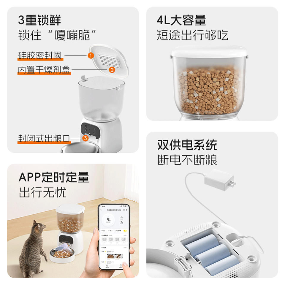 ดูดู สมาร์ทเครื่องให้อาหารสัตว์เลี้ยงอัตโนมัติ 4 ลิตร พร้อมระบบควบคุมผ่านแอพสำหรับแมวและสุนัข สีขาว ปลั๊กแบบ US ถอดประกอบได้