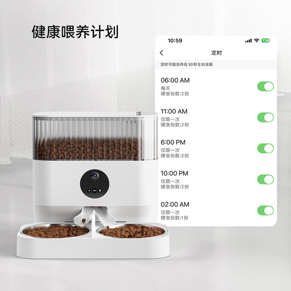 เครื่องให้อาหารสัตว์เลี้ยงอัจฉริยะ Dudu ความจุขนาดใหญ่ 5 ลิตร พร้อมระบบจ่ายอาหารแบบตั้งเวลาและปริมาณสำหรับสุนัขและแมว ปลั๊กแบบ US ถอดประกอบได้