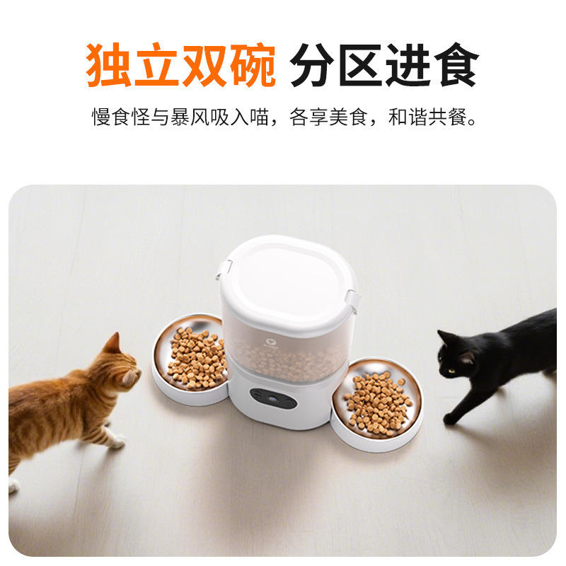 เครื่องให้อาหารสัตว์เลี้ยงอัตโนมัติ Dudupet รุ่น Du F14 Tri Eye พร้อมระบบควบคุมผ่านแอพพลิเคชั่น แบตเตอรี่แบบชาร์จได้ ชามคู่ สำหรับสุนัขและแมว