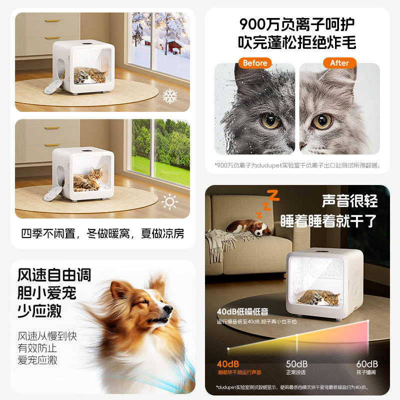 กล่องอบแห้งสัตว์เลี้ยงอัจฉริยะ Dudupet ขนาด 70 ลิตร เครื่องอบแห้งสุนัขและแมวอัตโนมัติ พร้อมระบบป้องกันความร้อนเกิน สีขาว