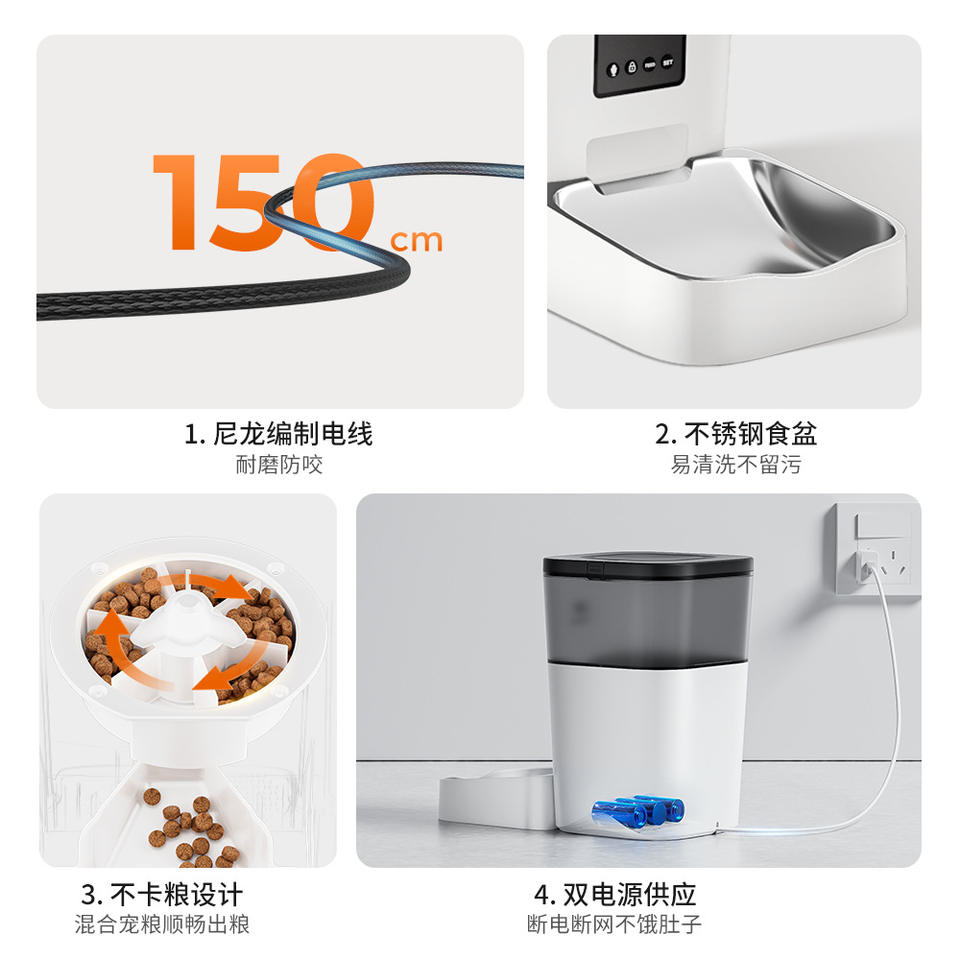 เครื่องให้อาหารสัตว์เลี้ยงอัจฉริยะ Dudupet สีขาว 1.25 กก. ชามถอดออกได้ ควบคุมผ่านแอป สำหรับสุนัขและแมว