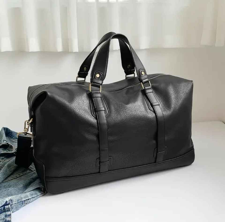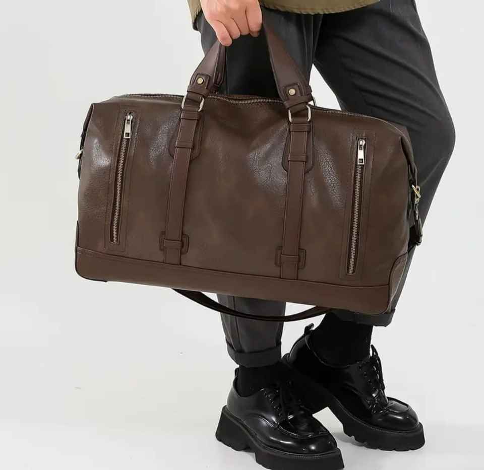 ชุดดัฟเฟิลหนังแบบถือกระเป๋าใส่เสื้อผ้าหนังแบบพับได้สำหรับไปยิมเดินทางหรูหราโลโก้ที่กำหนดเอง