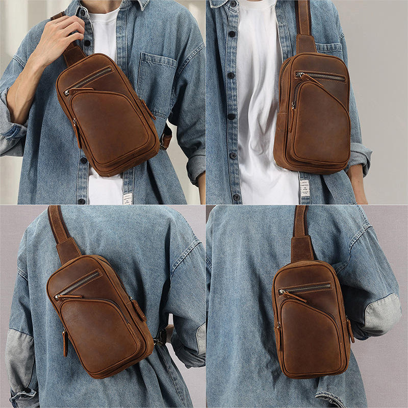 กระเป๋าคาดหน้าอกผู้ชาย Dujiang หนังแท้ ความจุขนาดใหญ่ ใช้ได้ทุกวัน สวมใส่สบาย สะพายไหล่