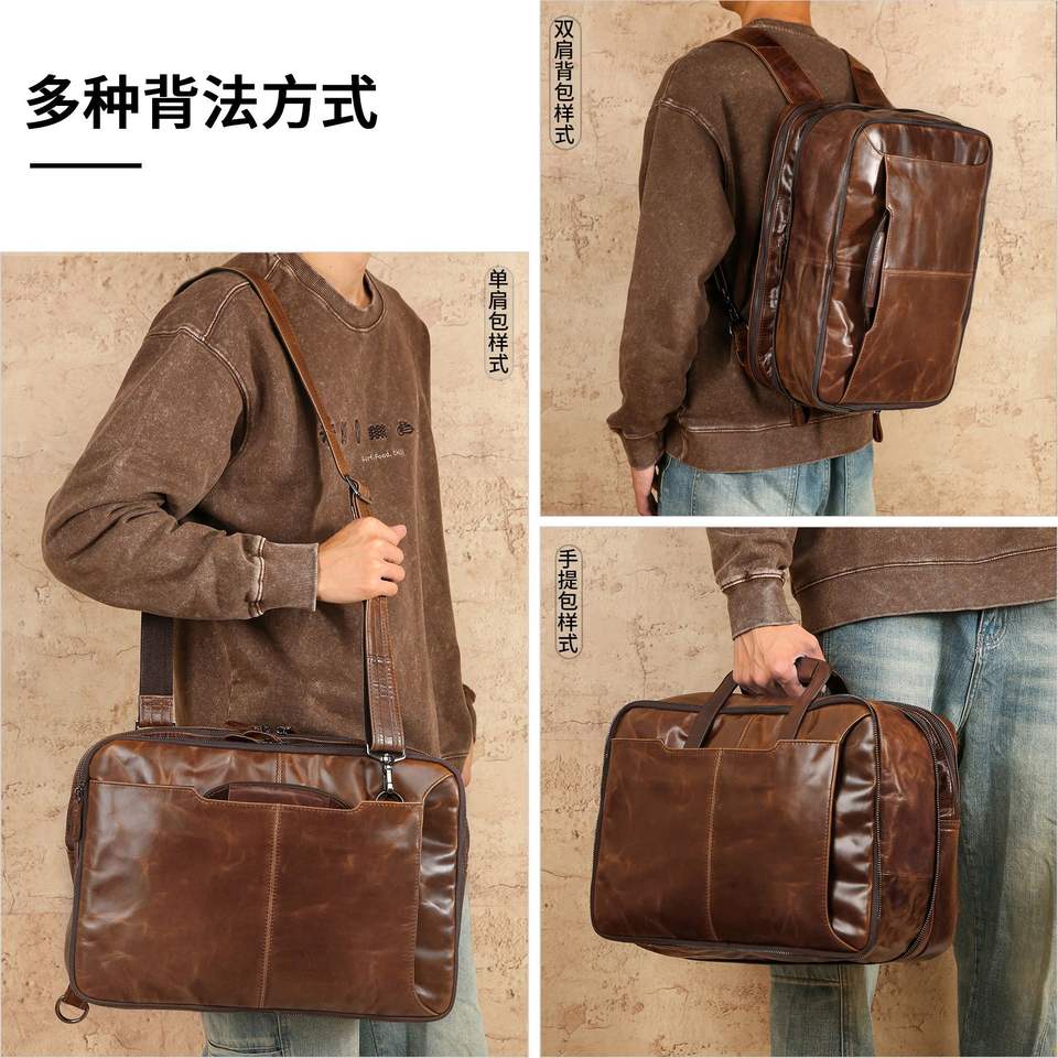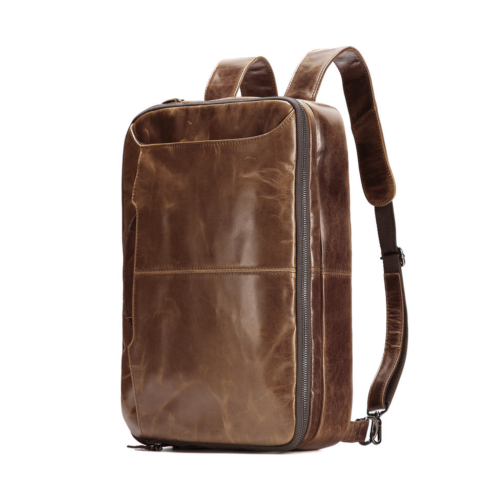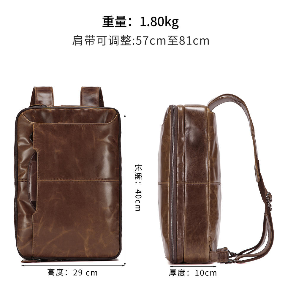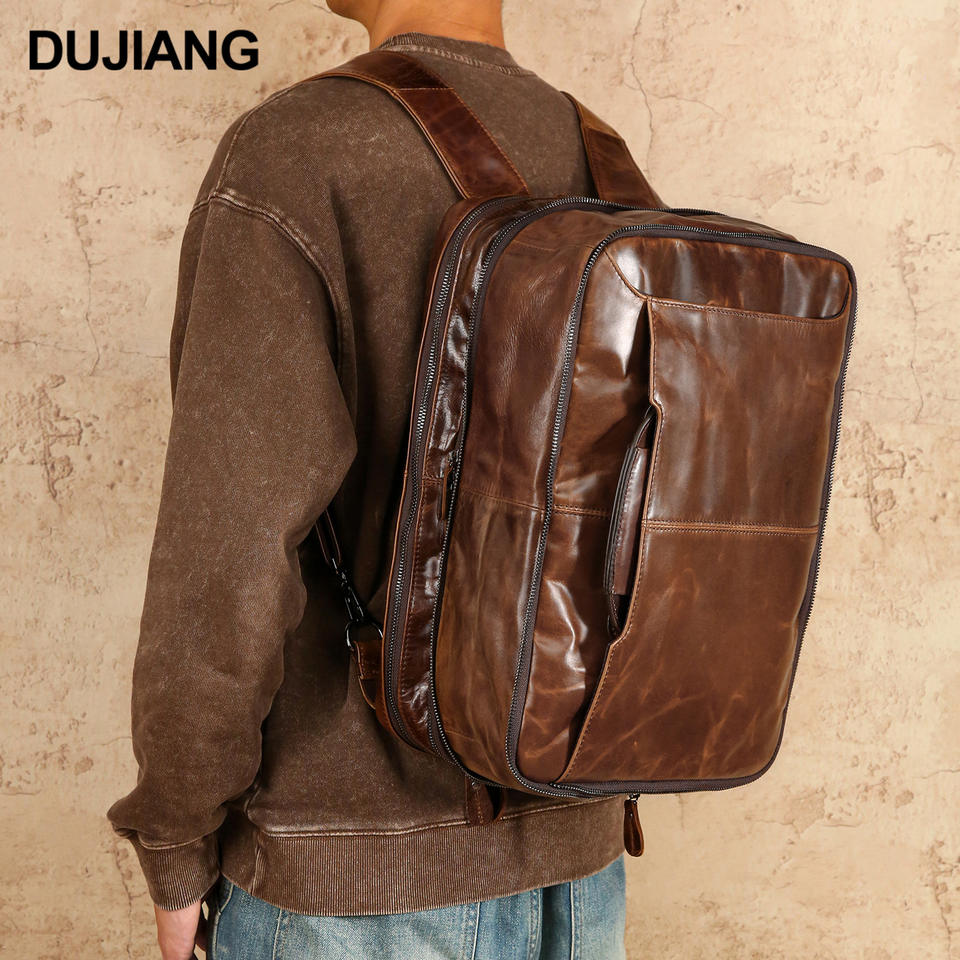 กระเป๋าเป้สะพายหลังหนังเคลือบน้ำมันดูเจียงความจุขนาดใหญ่ขยายได้กระเป๋าเดินทางเพื่อธุรกิจผู้ชายสันทนาการกลางแจ้งสีทึบ