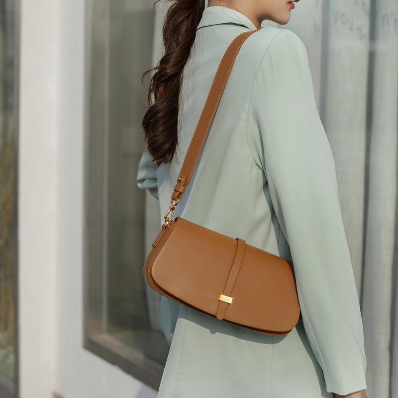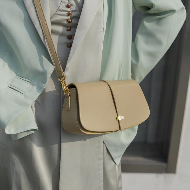 กระเป๋าสะพายไหล่ทรงอานม้าหนังแท้ดีไซน์เฉพาะตัวสำหรับผู้หญิง ปี 2022 รุ่นใหม่ พร้อมตัวล็อคแบบ Hasp