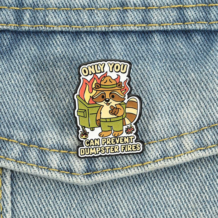 เข็มกลัดเคลือบลายมีมไฟดับบนถังขยะ แรคคูนเรนเจอร์ ตลกขบขัน เครื่องประดับติดปกเสื้อ พร้อมส่ง ขายส่ง