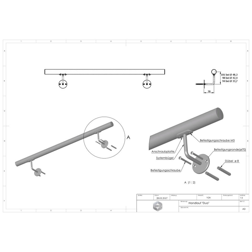 ราวจับแบบคู่ราวบันไดและราวจับระดับพรีเมียมเพื่อเพิ่มความปลอดภัยและความสวยงาม