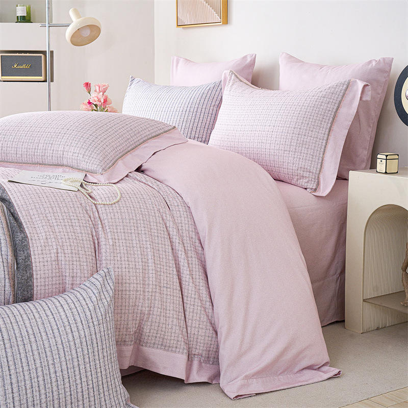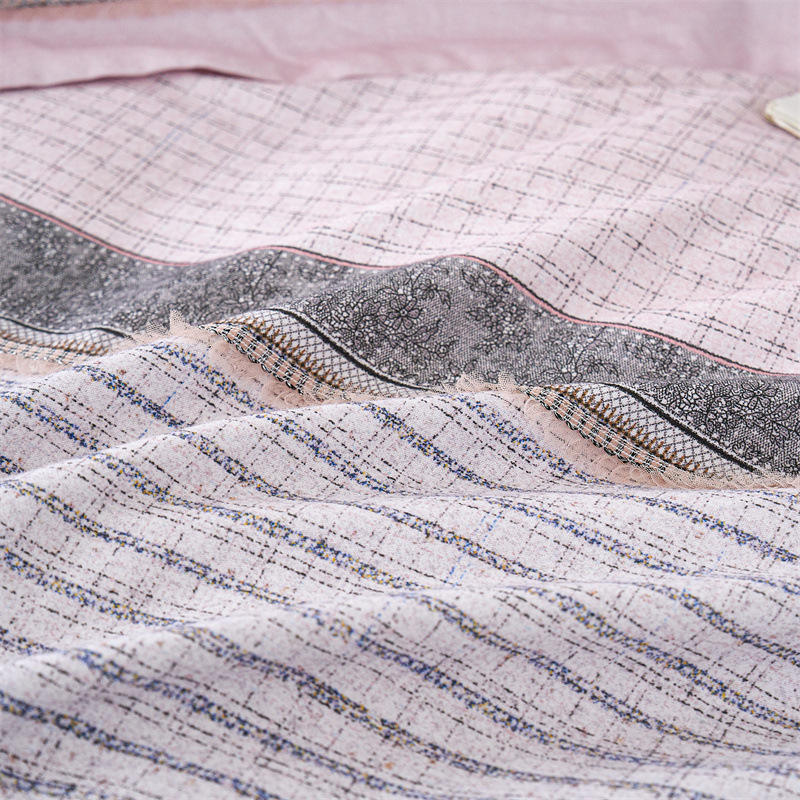 Duoximeimiankang 100% Cotton Striped Duvet Cover Set Autumn Winter Bedding Four Piece Air Permeable Machine Washable