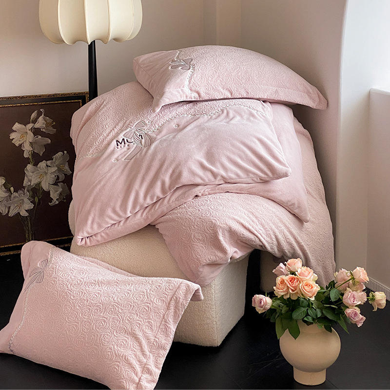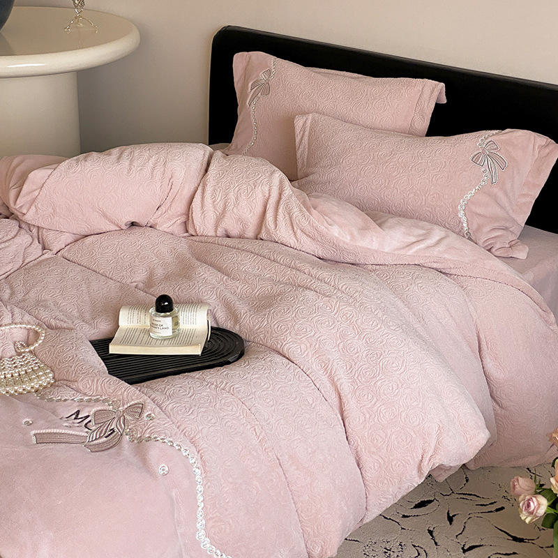 ชุดผ้าห่มนวมดูโอซิเมียนคัง 4 ชิ้น ลายดอกไม้ สำหรับตกแต่งบ้าน ให้ความอบอุ่นในฤดูใบไม้ร่วงและฤดูหนาว