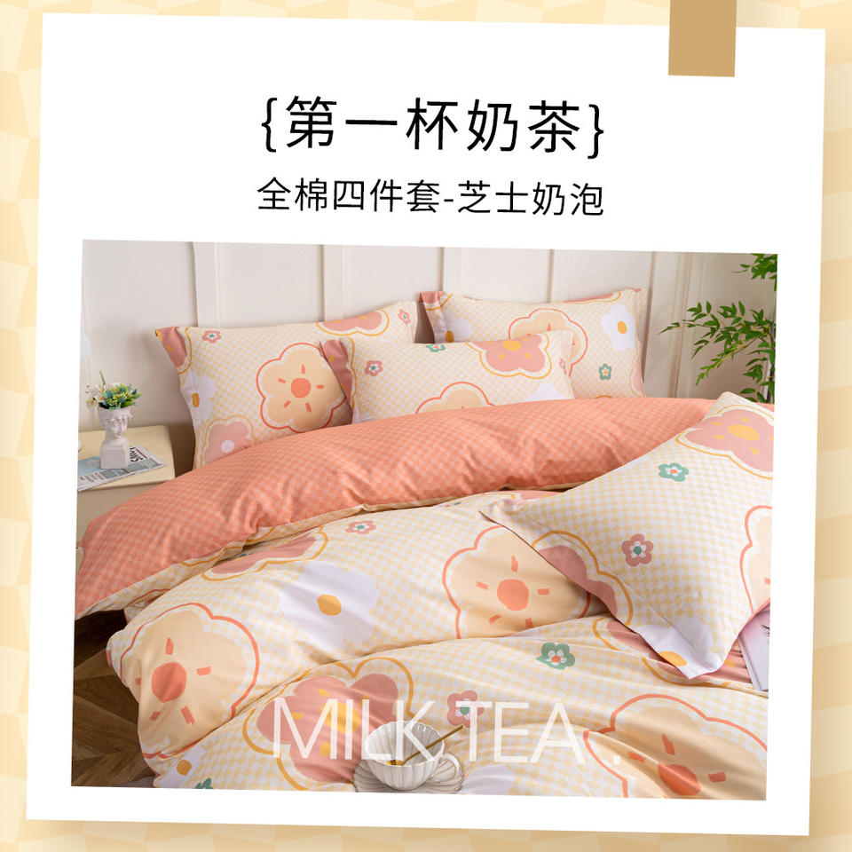 Duoximeimiankang Pure Cotton Bedding Set 4 Piece Polka Dot Pattern Breathable Home Use Sheet Style 128x68 Fabric Density