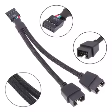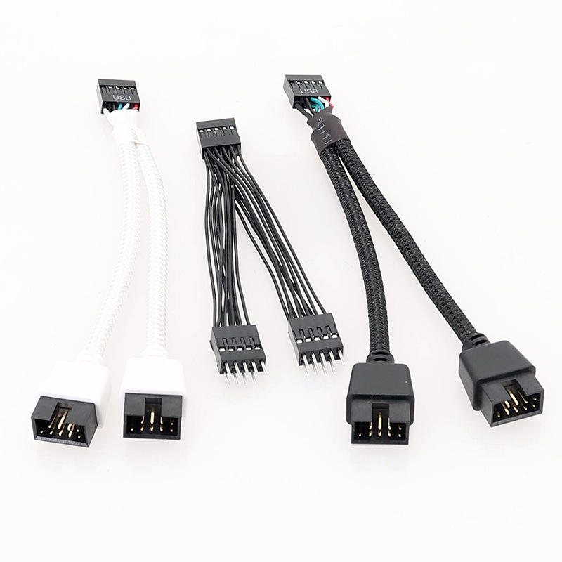 Dupont 9Pin 2.54มม. ตัวผู้ไปยังตัวเมียสายแยก1ถึง2 Y USB สายเชื่อมต่อข้อมูลเมนบอร์ดสายทองแดงบริสุทธิ์
