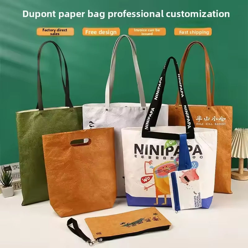 Dupont Tyvek กระเป๋าช้อปปิ้งกระดาษคราฟท์การ์ตูนเป็นมิตรต่อสิ่งแวดล้อม