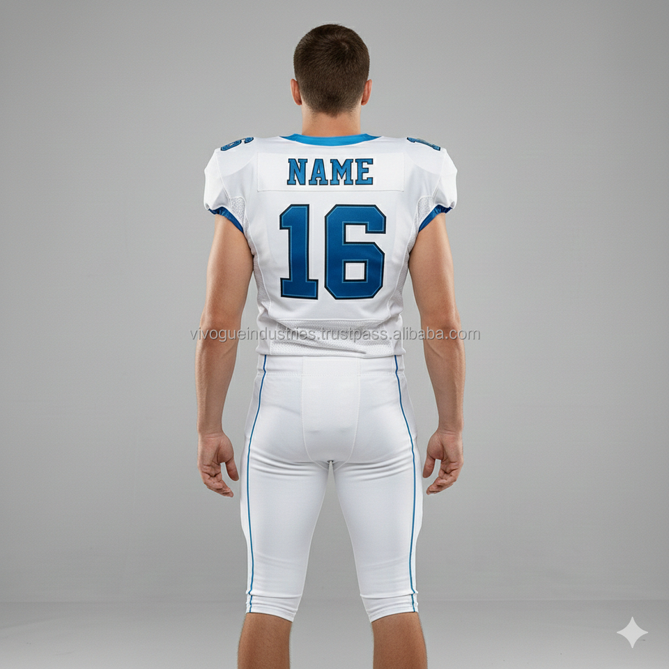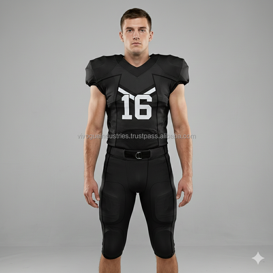 ชุดยูนิฟอร์มอเมริกันฟุตบอลแขนสั้น ผ้าโพลีเอสเตอร์ 100% ระบายอากาศได้ดี ทนทาน รับปักลายตามสั่ง แบบซับลิเมชั่น สำหรับสโมสร