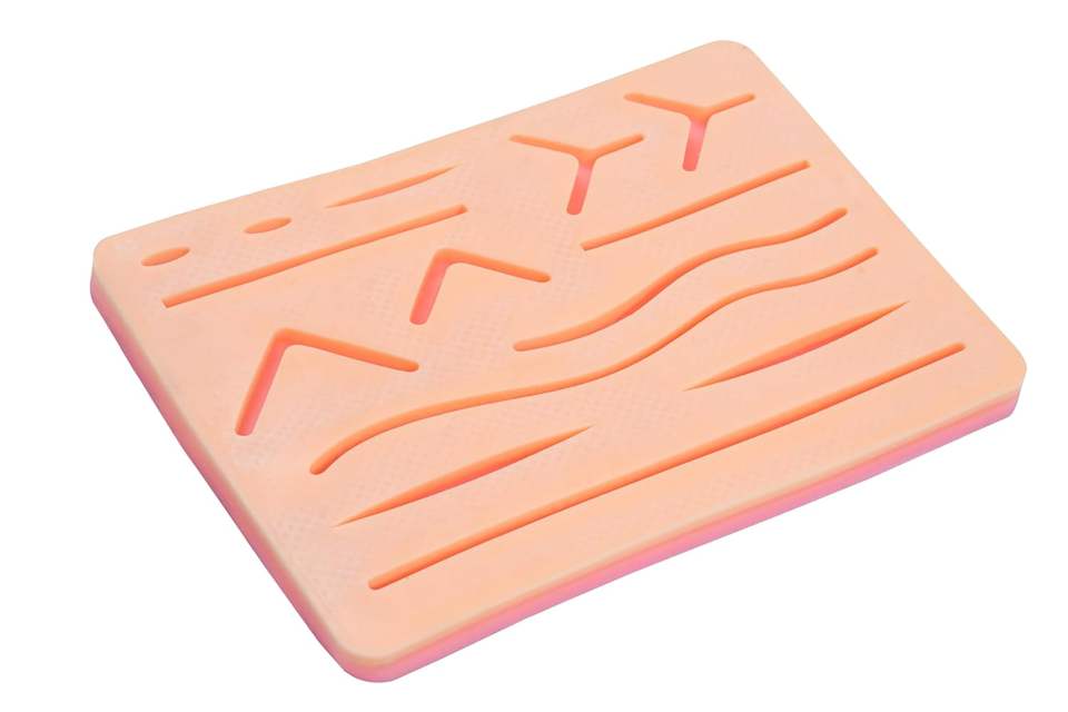 แผ่นฝึกหัดเย็บแผล14ชิ้นที่ตัดมาแล้ว3ชั้นซิลิโคนทนต่อการฉีกขาดเครื่องมือทางการแพทย์ด้วยมือ