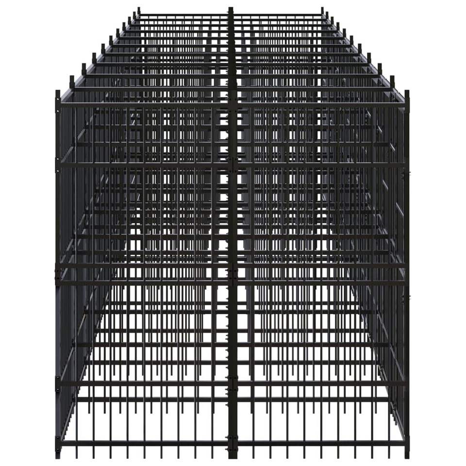 คอกสุนัขขนาด 198.5 ตารางฟุต ทนทาน โครงเหล็กเคลือบผงสีดำ พร้อมประตูและคอกสำหรับสัตว์เลี้ยง