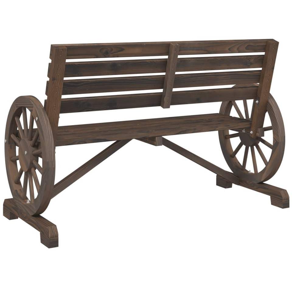Durable 2-Seat Garden Bench Solid Fir Wood with Burnt Wood Finish Patio Bench