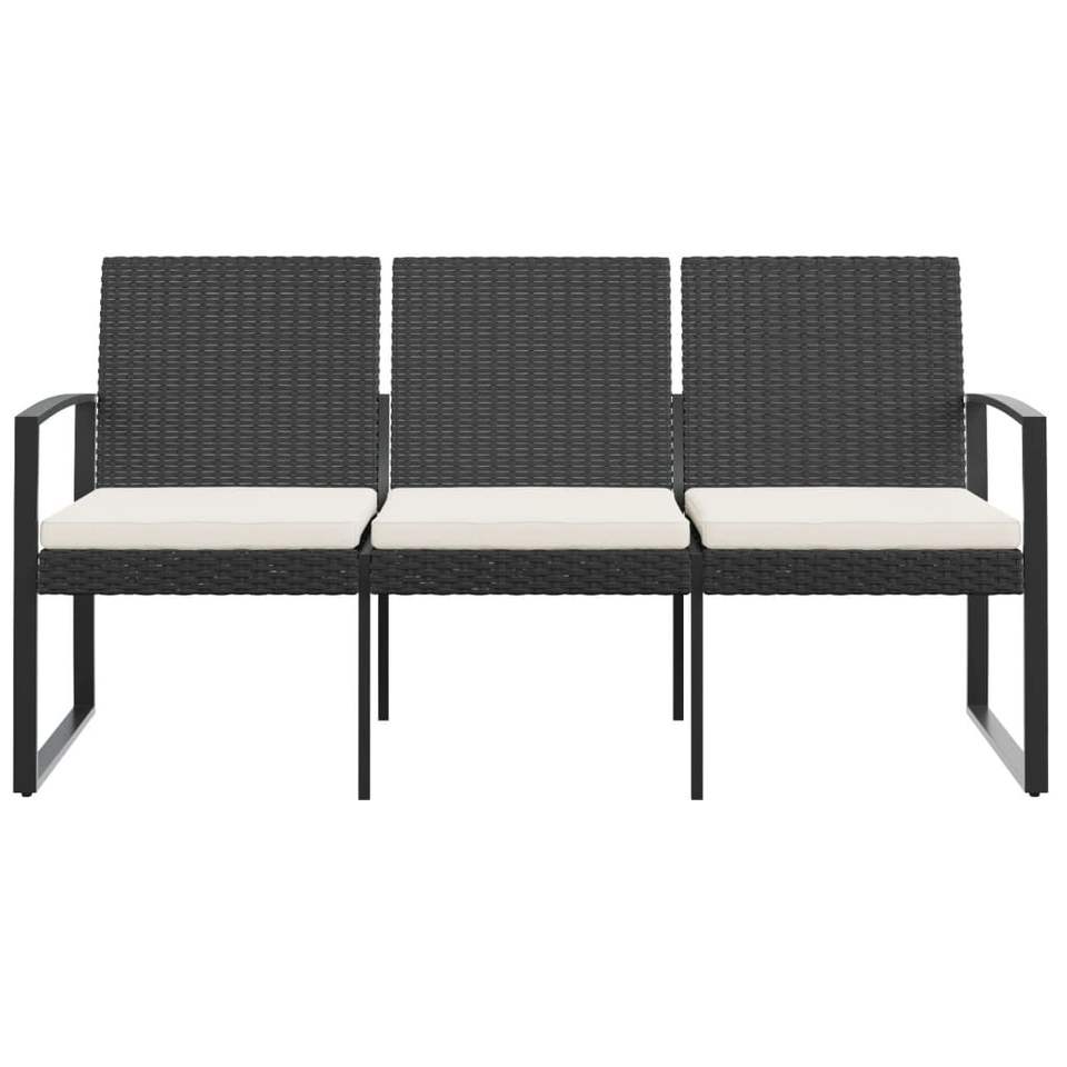 Durable 3-Seater Garden Bench in Black Polypropylene Patio Bench