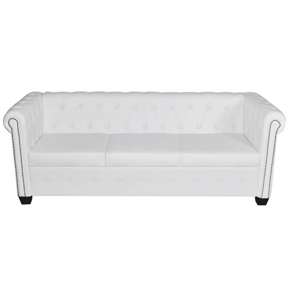 โซฟาหนังเทียมสีขาวทรงสี่เหลี่ยมผืนผ้า 3 ที่นั่ง ทนทาน สำหรับห้องนั่งเล่น ชุดโซฟา 3 ที่นั่ง ดีไซน์ทันสมัย