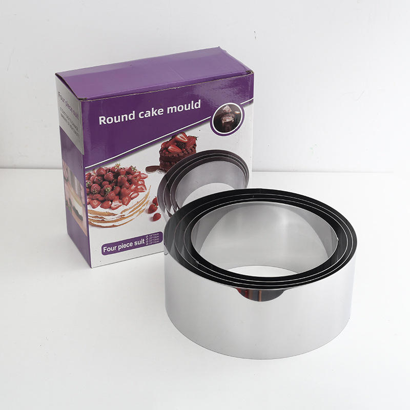แม่พิมพ์เค้กทรงกลมสแตนเลส 430 ทนทาน 4 ชิ้น สำหรับมืออาชีพ ทำมูสและขนมอบด้วยตัวเอง