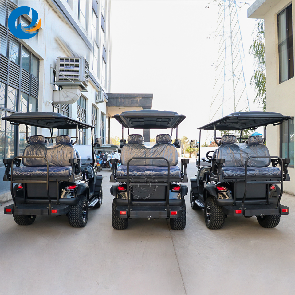 รถเข็น 4 ที่นั่ง ทนทาน แข็งแรง พร้อมเบรก สำหรับรีสอร์ท สนามกอล์ฟ และการขนส่งเชิงพาณิชย์