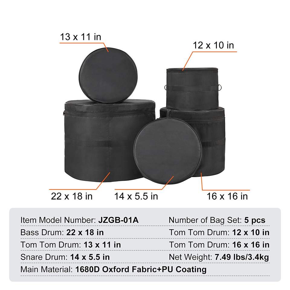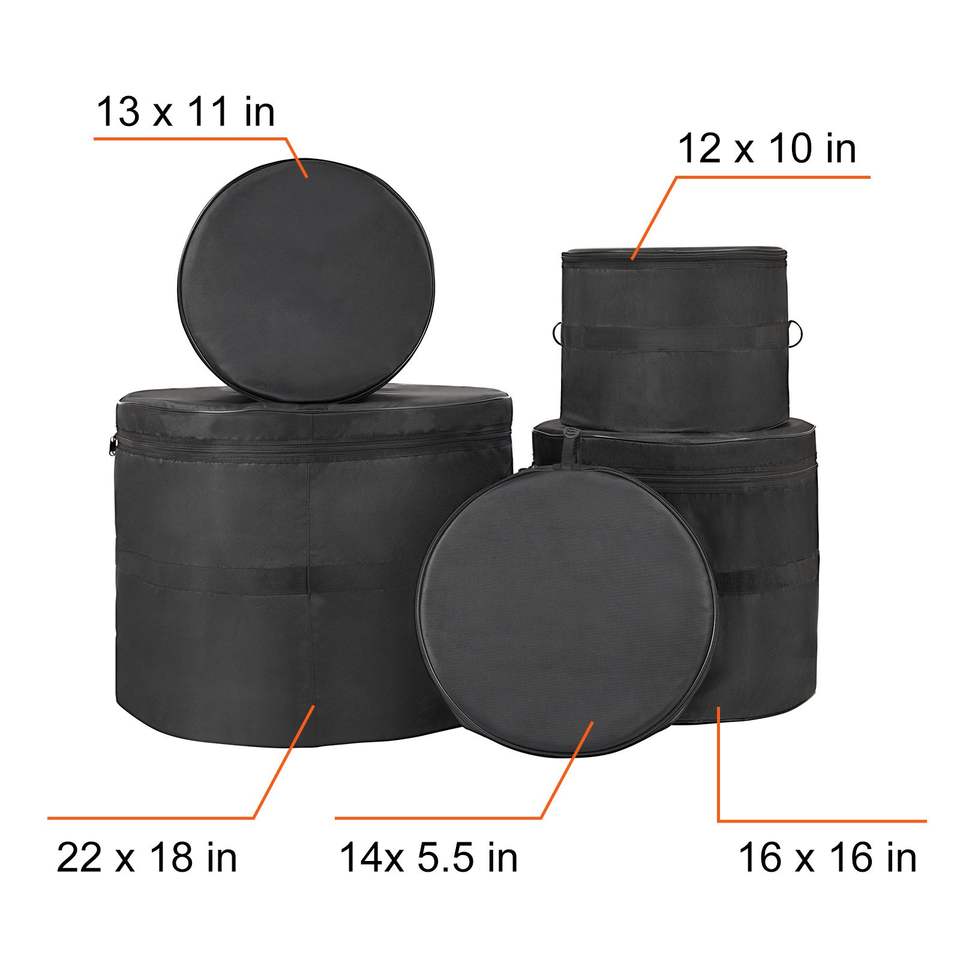 ชุดกระเป๋าใส่กลอง 5 ชิ้น ทนทาน ผลิตจากวัสดุ Oxford 1680D สายสะพายไหล่ถอดได้ 1.5 เมตร พร้อมหูหิ้วและบุรองรับสำหรับเครื่องดนตรี