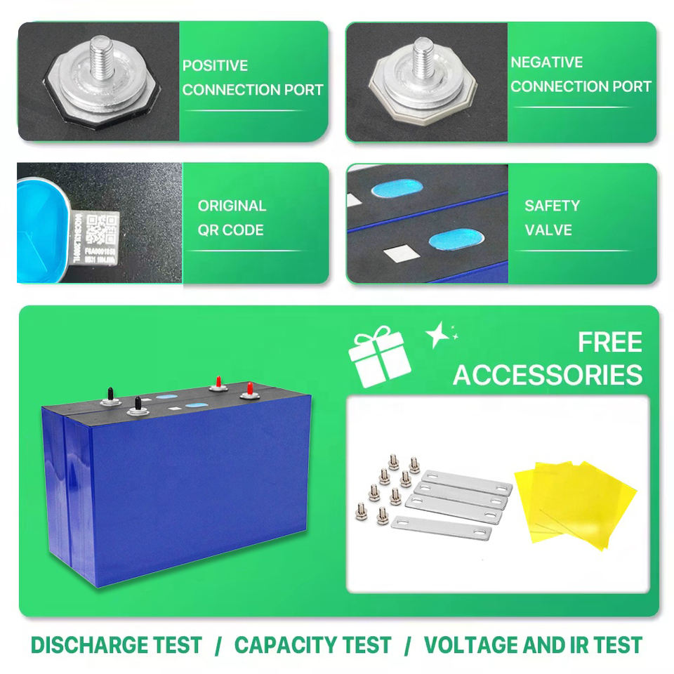 เซลล์แบตเตอรี่ลิเธียมไอออนแบบปริซึมลึกทนทาน314Ah 628Ah ทนทานใช้ได้ MB56 MB31แบตเตอรี่ลิเธียมเหล็ก