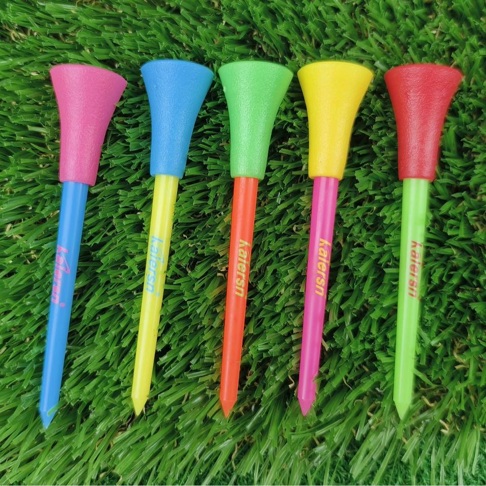 ทีตีกอล์ฟพลาสติกแบบมีฐานรองรับลูกกอล์ฟ ขนาด 83 มม. ยี่ห้อ Passen Durable สีผสม พร้อมปลอกยางกอล์ฟ ความยาว 70 มม. บรรจุ 30 ชิ้นต่อแพ็ค