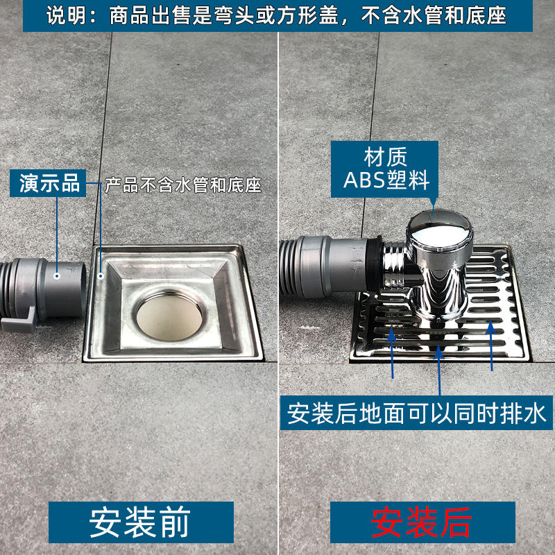 ฝาปิดท่อระบายน้ำทรงสี่เหลี่ยม วัสดุ ABS ทนทาน ดีไซน์ทันสมัย ข้อต่อท่อระบายน้ำเครื่องซักผ้าสแตนเลส ข้อต่อท่อระบายน้ำอ่างล้างจาน