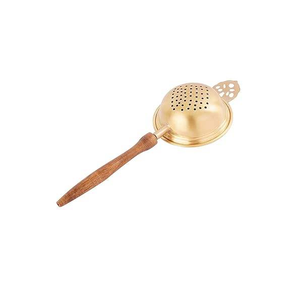 ที่กรองชาและกาแฟขนาดกลางที่ทำเสร็จแล้วเป็นมิตรกับสิ่งแวดล้อมพร้อมด้ามจับไม้ป้องกันสนิมที่ทนทานผลิตจากทองเหลือง