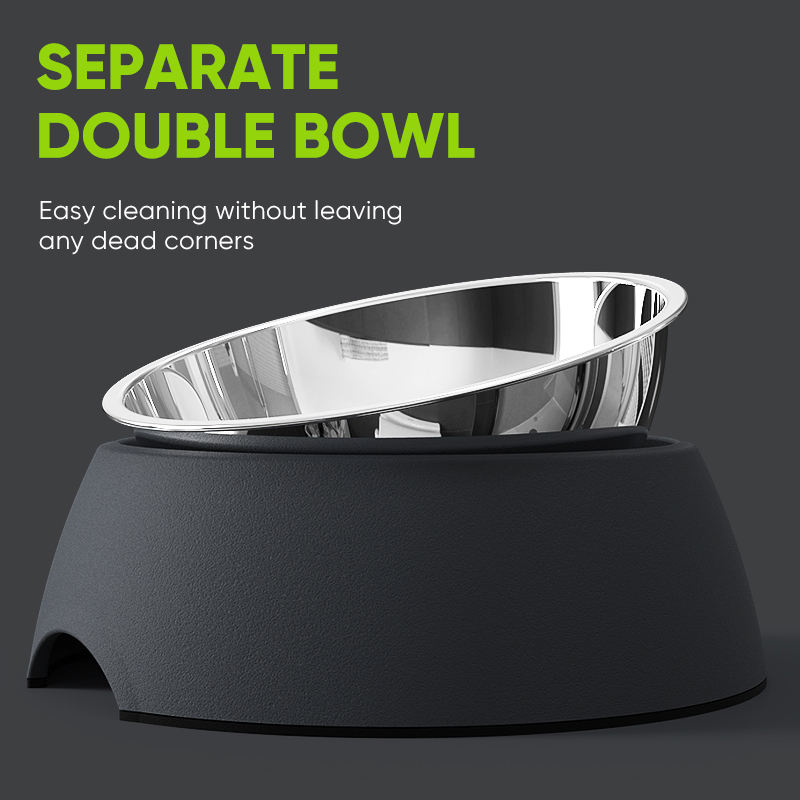 ชามอาหารสัตว์เลี้ยงเมลามีนสีเทาแข็งแรงทนทาน กันลื่น พร้อมถาดสแตนเลส ขนาด S สำหรับสุนัข ชามและอุปกรณ์ให้อาหารระดับพรีเมียม