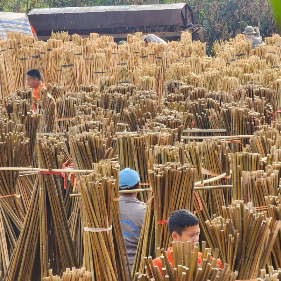 เสาไม้ไผ่แข็งแรงทนทาน (เส้นผ่านศูนย์กลาง 1.6-1.8 ซม. ความยาว 0.5-2.5 ม.) สำหรับเพาะชำต้นไม้และฟาร์ม ใช้สำหรับตกแต่งบังแดดพื้นดิน