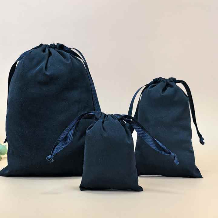 ถุงผ้ารูดเชือกสีดำทนทาน พิมพ์โลโก้ได้ ผลิตจากผ้าฝ้ายหลายชนิด สำหรับใส่ของหอม น้ำหอม เครื่องประดับ และสร้อยไข่มุก
