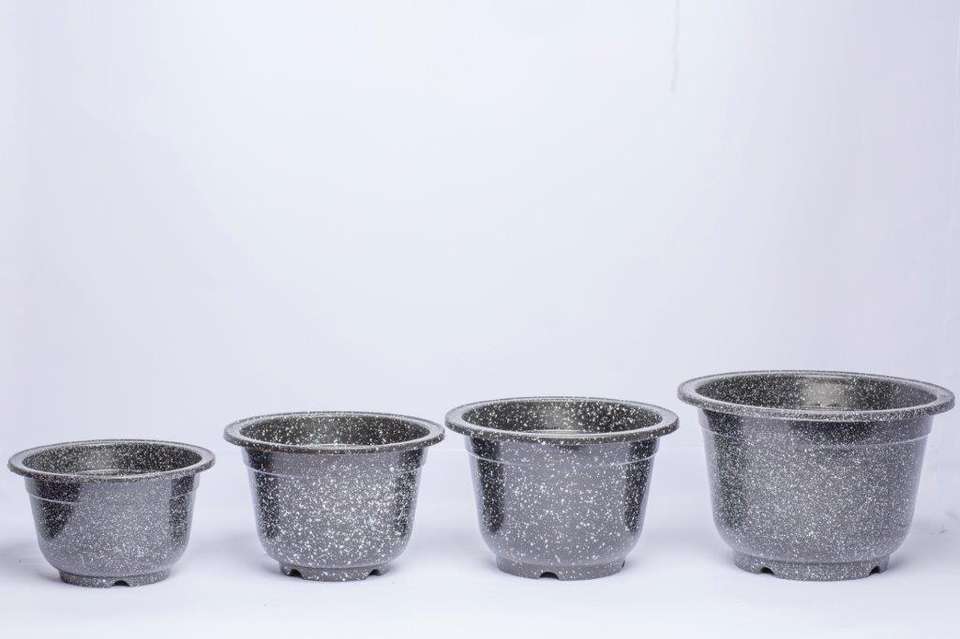 กระถางดอกไม้พลาสติกแกรนิตสีดำทนทานสำหรับตกแต่งในร่มและกลางแจ้งกระถางต้นไม้ PP น้ำหนักเบาสำหรับสวนระเบียง